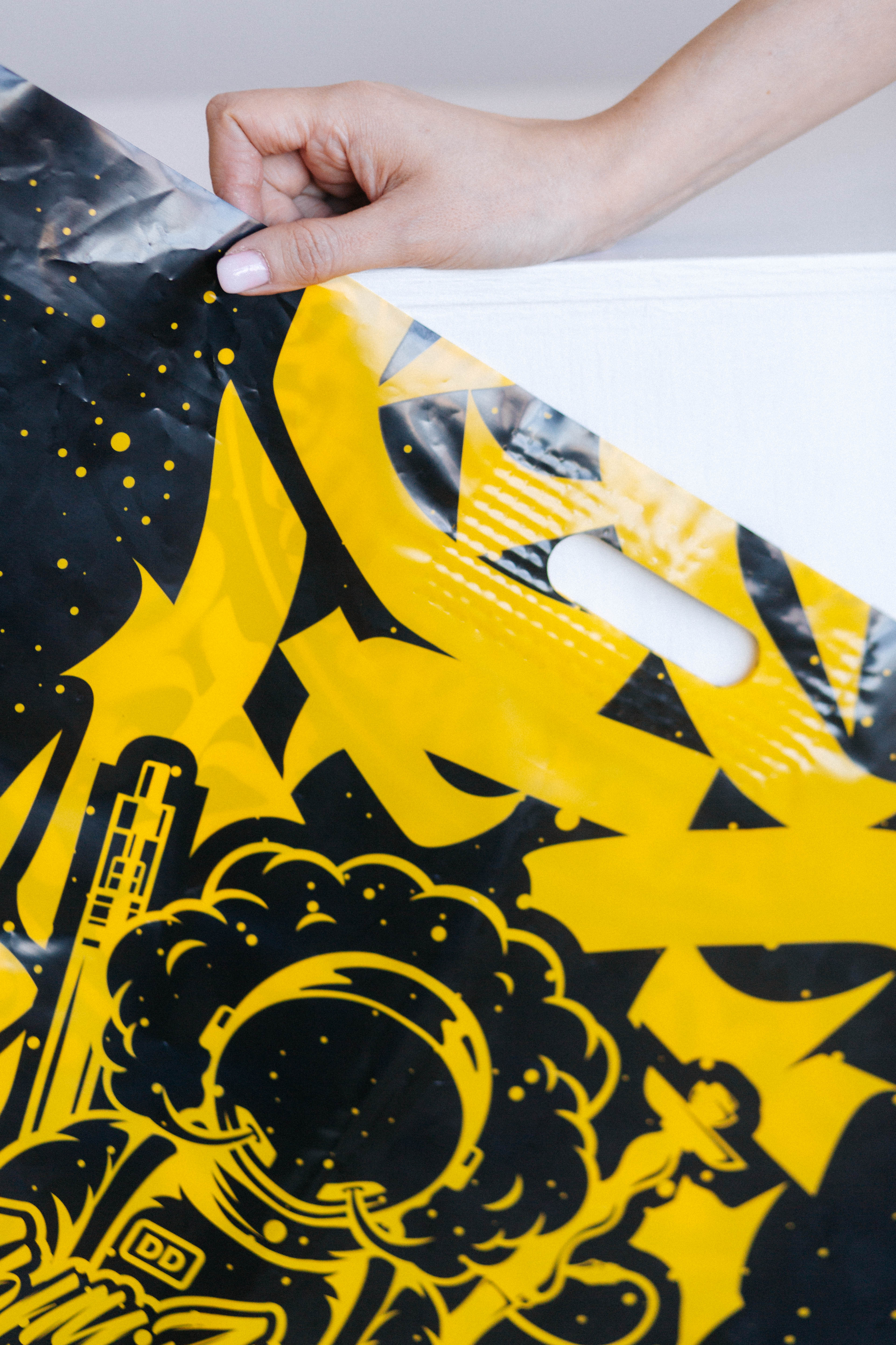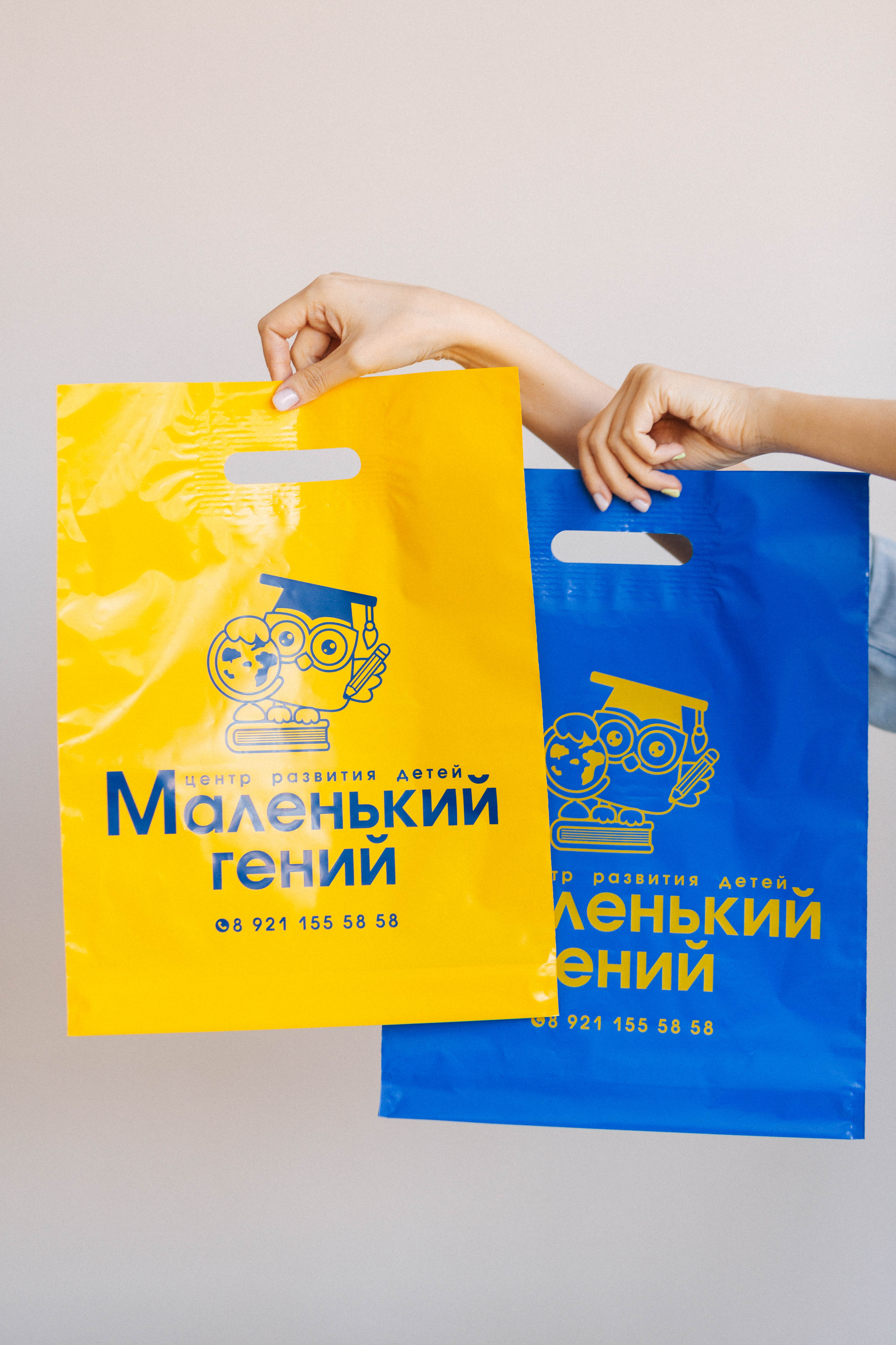 Печать логотипов на пакетах с прорубной ручкой для любых потребительских товаров: одежды, автохимии, лекарств, канцелярии и т.д.