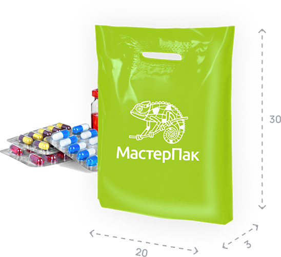 ПНД. 20 мкм. Нагрузка до 10 кг - 40 х 60 см. Боковая складка — 20 см.