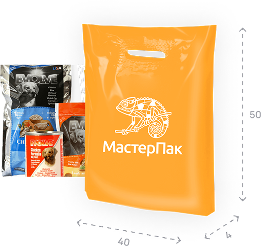 ПВД. 45 мкм. Нагрузка до 7 кг - 40 х 60 см. Боковая складка — 20 см.